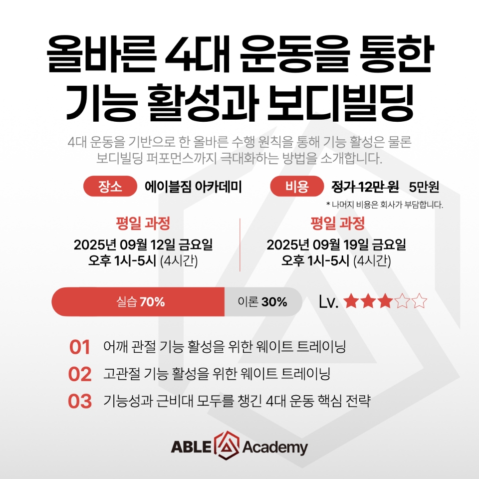 ABLEGYM 교육 프로그램과 참여 방법을 안내해드립니다.