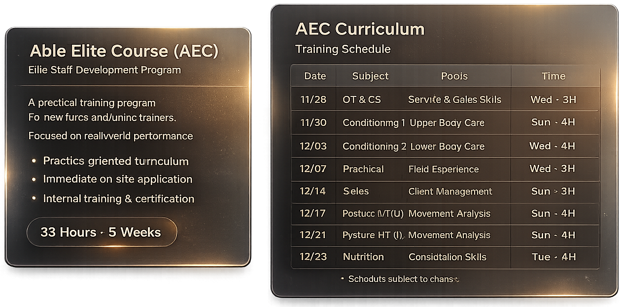 에이블짐 전 지점 트레이너 선생님들을 위한 교육 지원을 진행합니다.